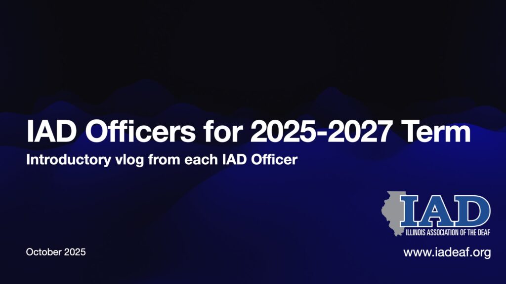 Media TeamOctober 7, 2025Blogs, General, Video, VlogNo comments Introductory vlog of the newly elected officers for IAD for the 2025-2027 term on our YouTube channel. Share this: Click to share on X (Opens in new window) X Click to share on Facebook (Opens in new window) Facebook Media TeamRelated ArticlesQ3 Board Meeting UpdatesMt. Sinai CEO Wants to Meet with IADConcerns Regarding Closing of Mt. Sinai’s Deaf Health Program Leave a comment Cancel replyYour email address will not be published. Required fields are marked * Save my name, email, and website in this browser for the next time I comment. Notify me of follow-up comments by email. Notify me of new posts by email. Δ This site uses Akismet to reduce spam. Learn how your comment data is processed.